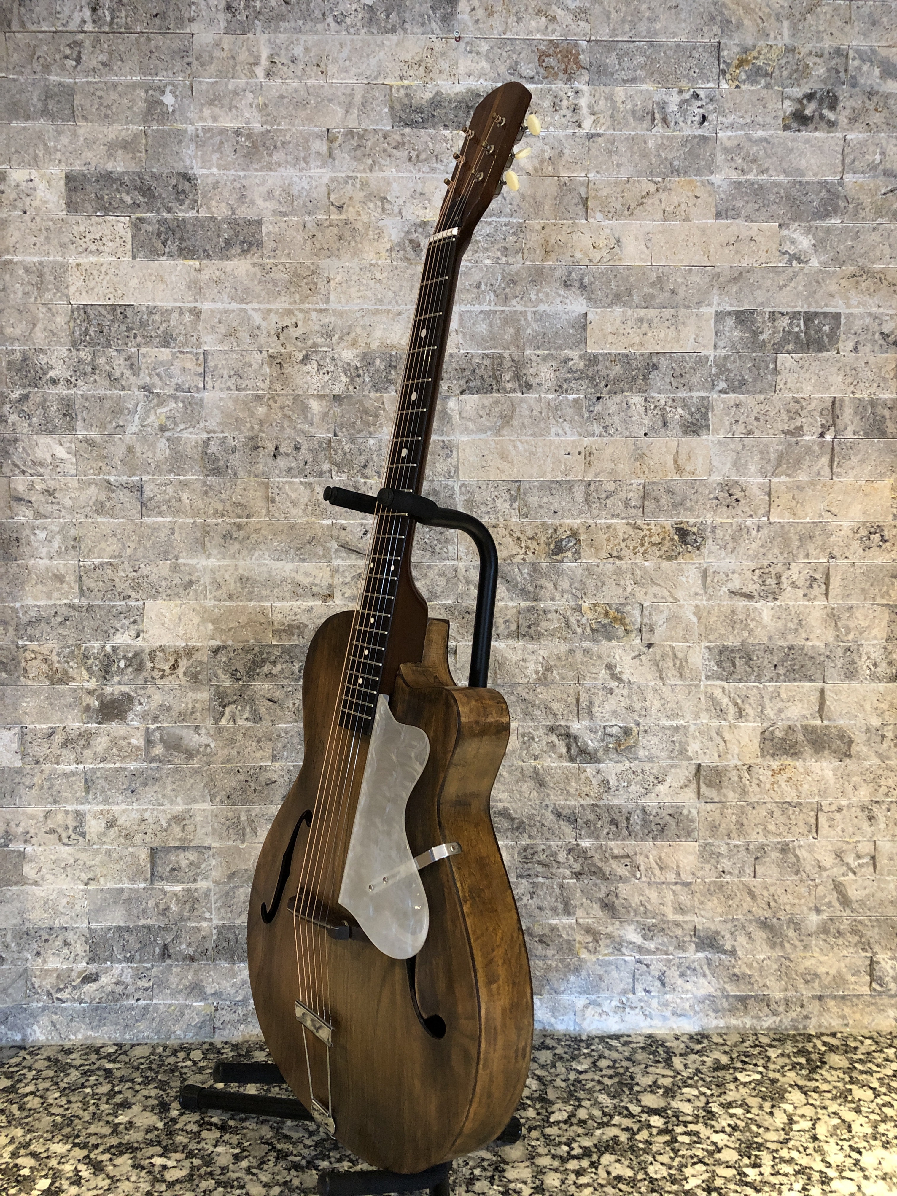 The million dollar question is “how does it sound?” Not too shabby at all. The tone and intonation is pretty good, and I’m tempted to find a vintage neck pickup and electrify this thing.