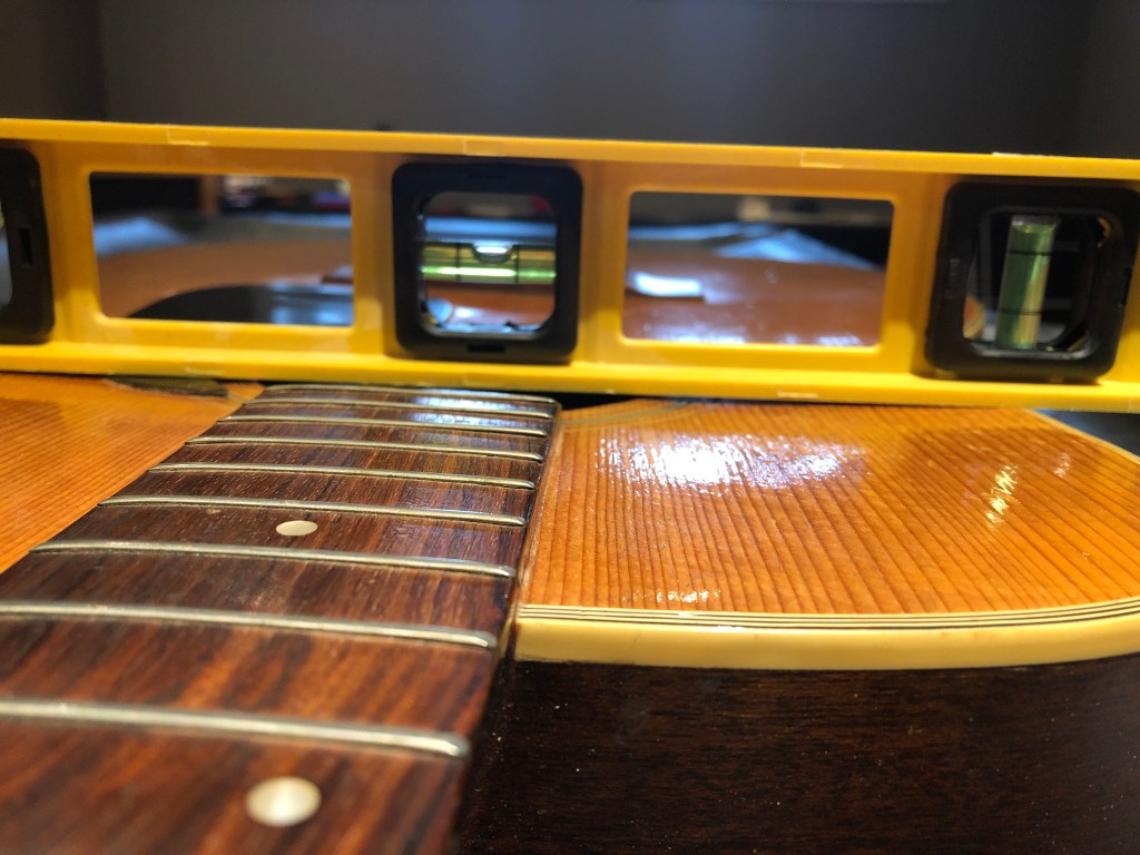It brought the action down when under tension, but still just not quite enough. With full tension, there was still just so much downward pressure on the sound hole area that the top flexed enough to keep the action up. I figured if I could engineer a support post to help distribute the downward forces over more of the guitar surface, then maybe.