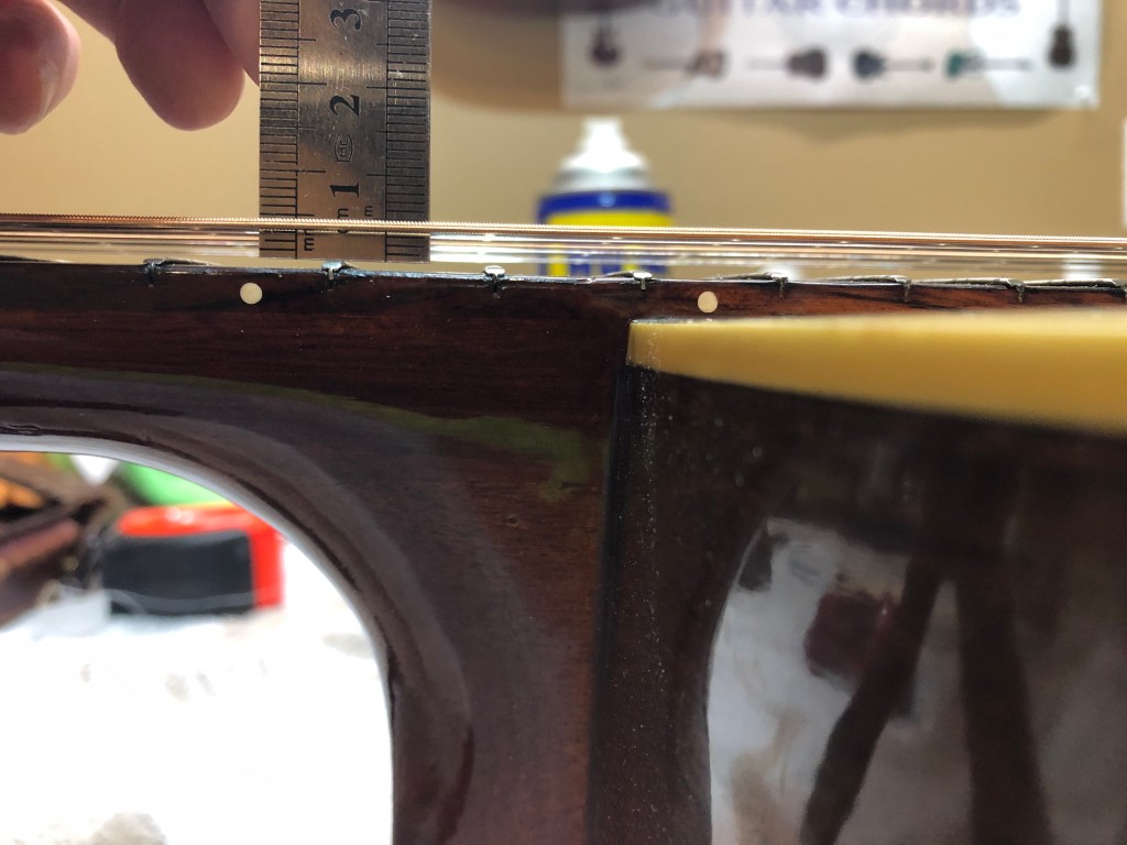 Tuned it up after the bridge doctor install, and, although the bridge and belly were solid now, with no bulging, the action was still far too high. Back to the drawing board I guess.