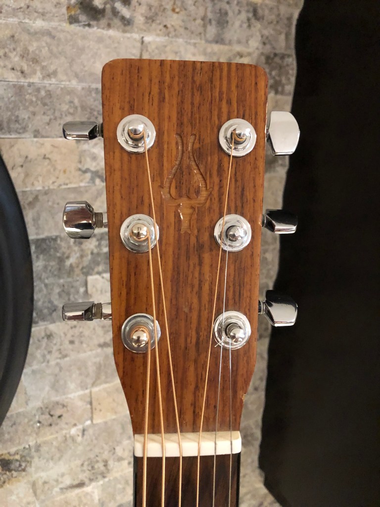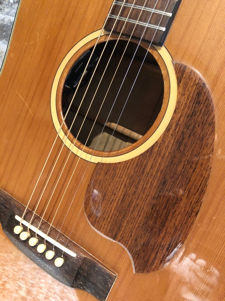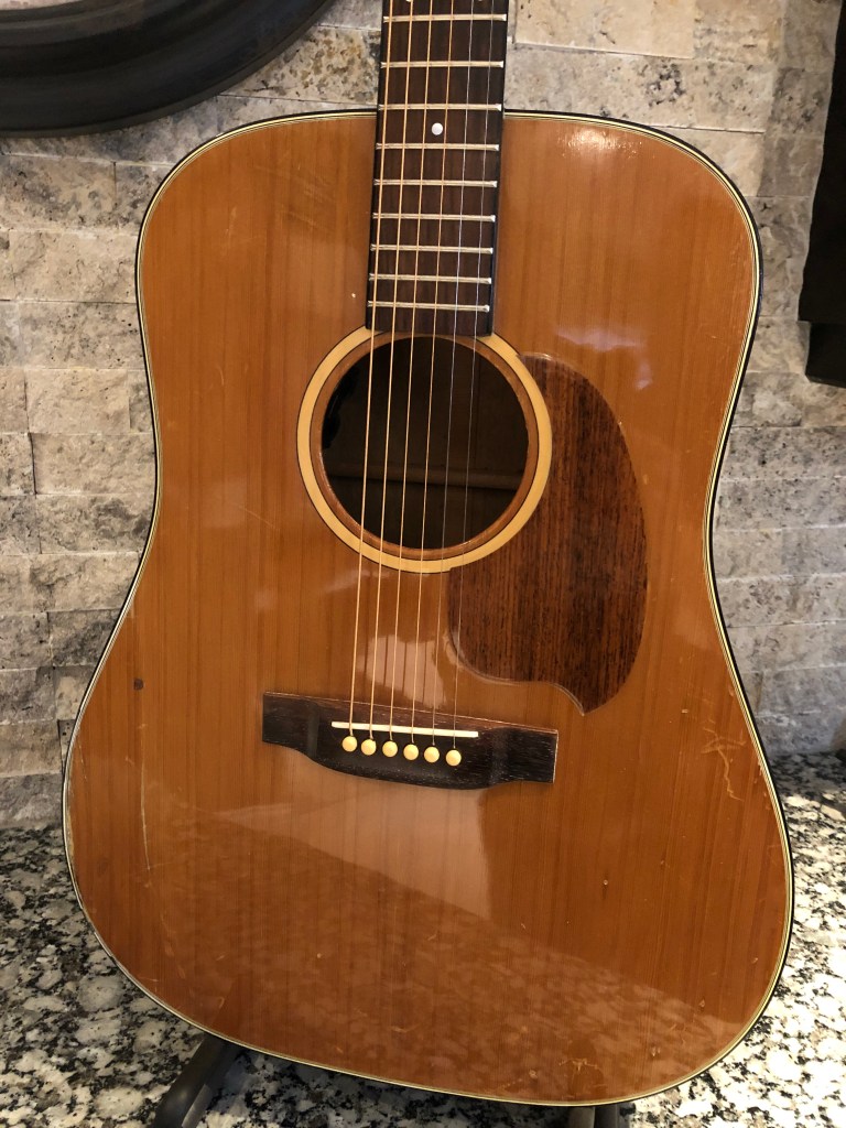 Daion guitars have almost a cult like following amongst those who like Japanese guitars. Made in Yamaki factories, Daion guitars were tremendously well made. This fella came to me broken and battered after it had been dropped on the lower bout and the cedar top popped. The previous owner really just wanted it to not go to the dump – and neither did it. It turned out pretty well. Cosmetically is shows the scars of battle, but structurally it is rock solid now, and it sounds unbelievable. I have bought, fixed, and sold almost 100 guitars, and have only ever kept two restorations. This is one of them. It is by no means the most impressive guitar I’ve worked on (I’ve dumped 3 Martins and several other top name guitars), but it is honestly is the very best playing and sounding dreadnaught I’ve ever owned. Despite a cost of zero dollars and zero cents, you probably couldn’t offer me enough money to part with it (but I’d be okay if you tried :). The link to my YouTube restoration video is right below. Thanks for watching.
