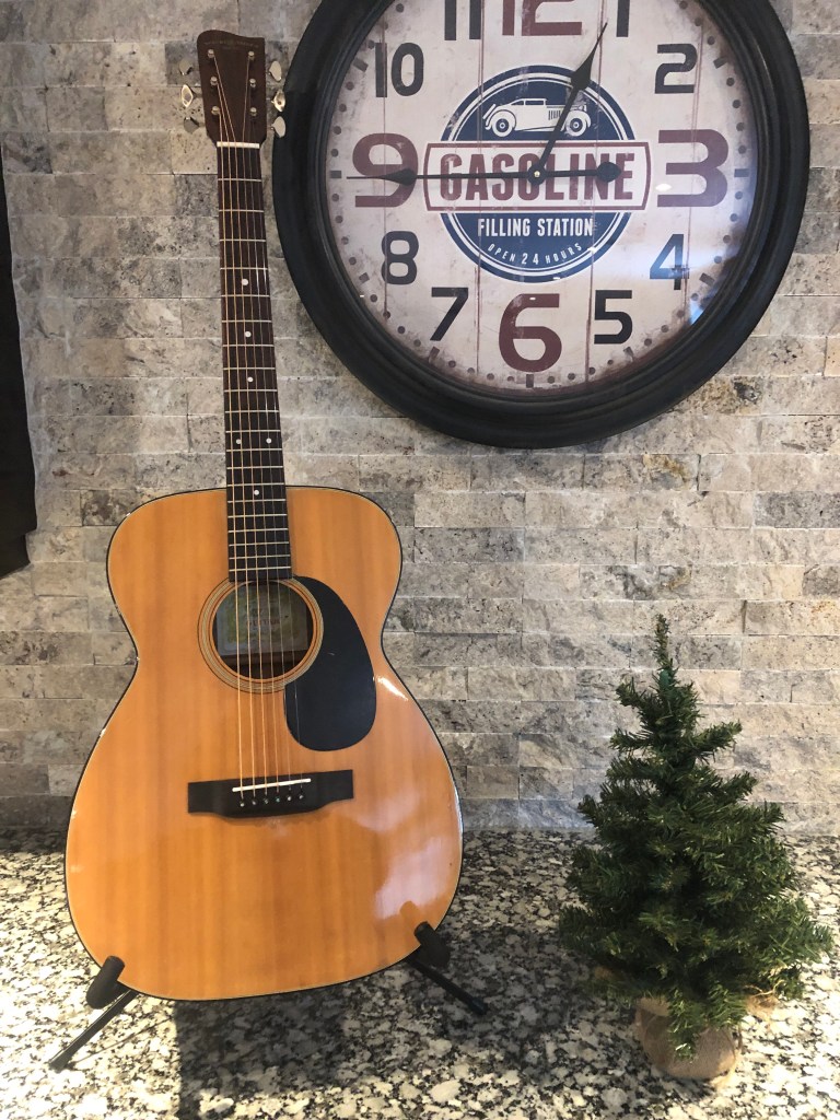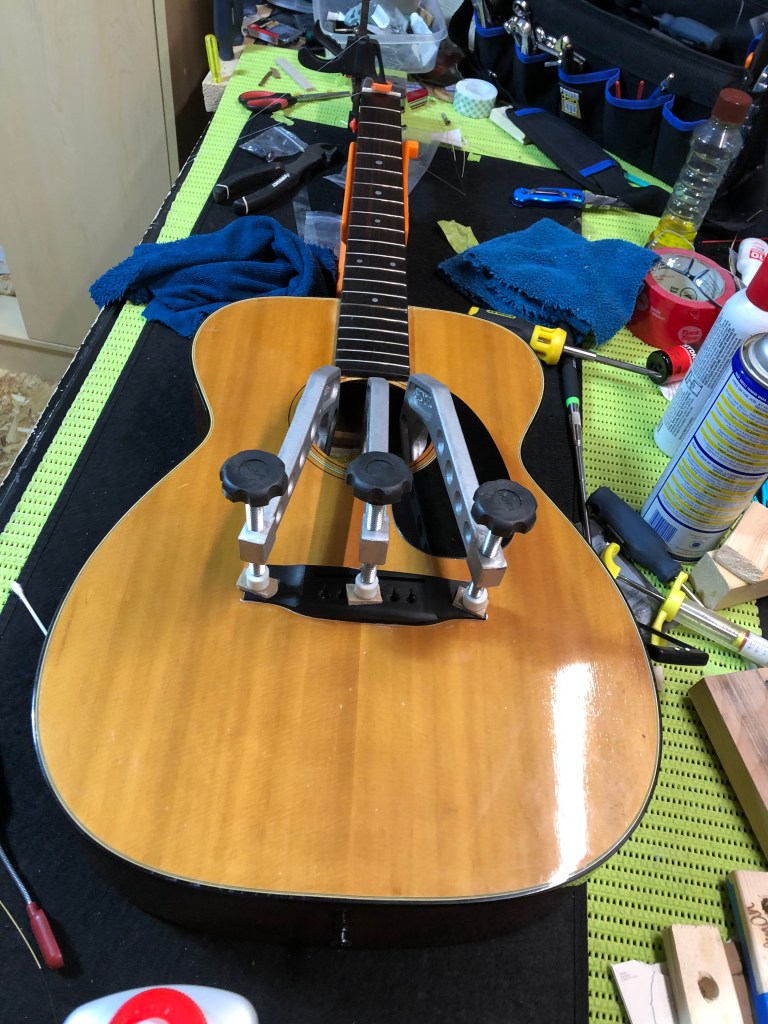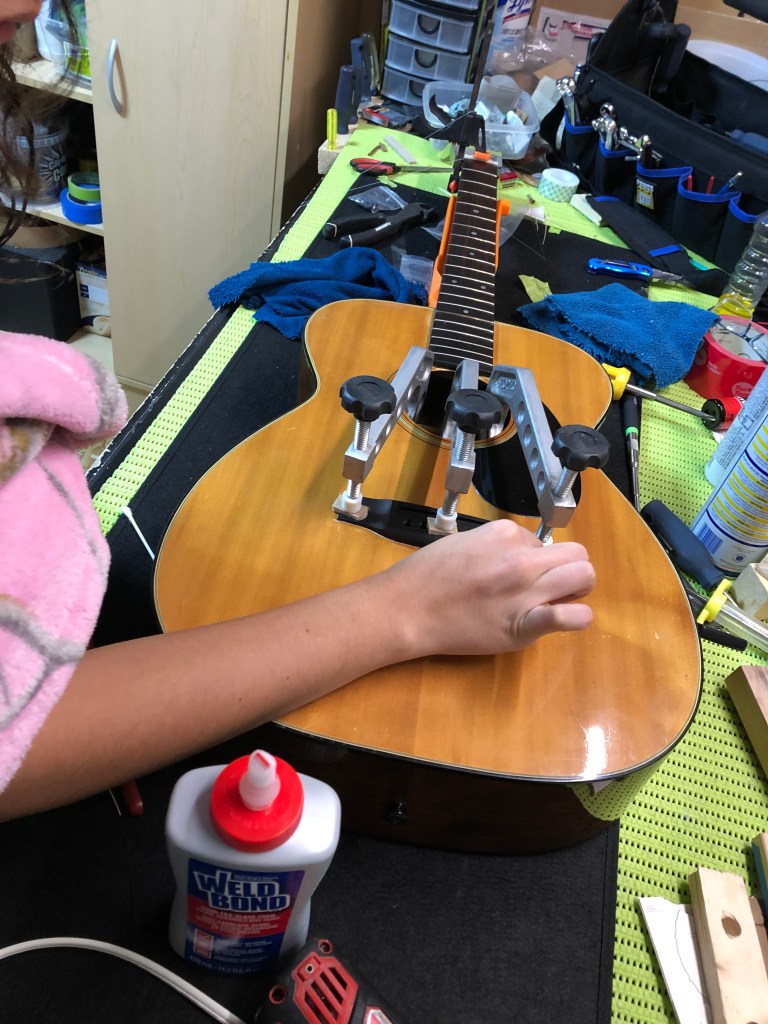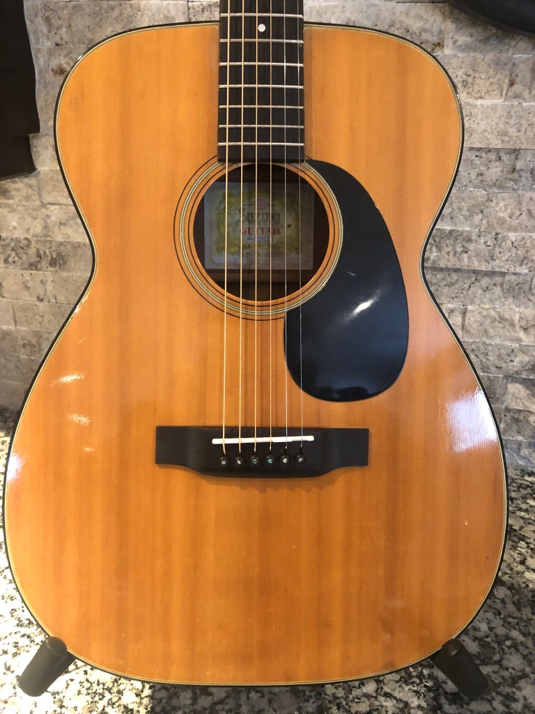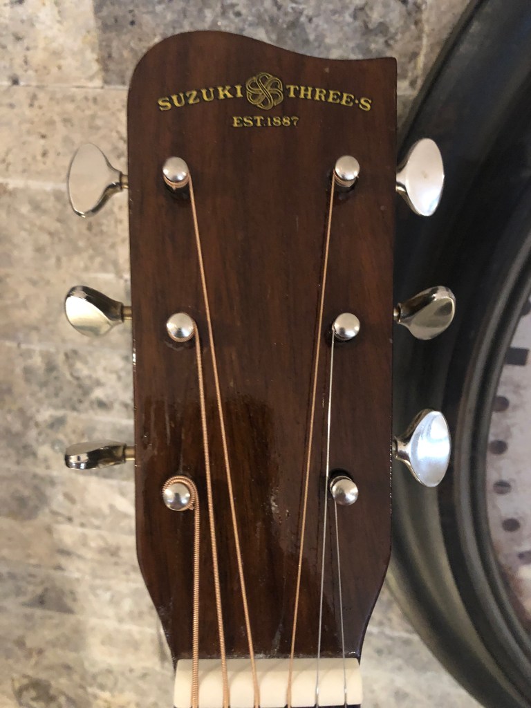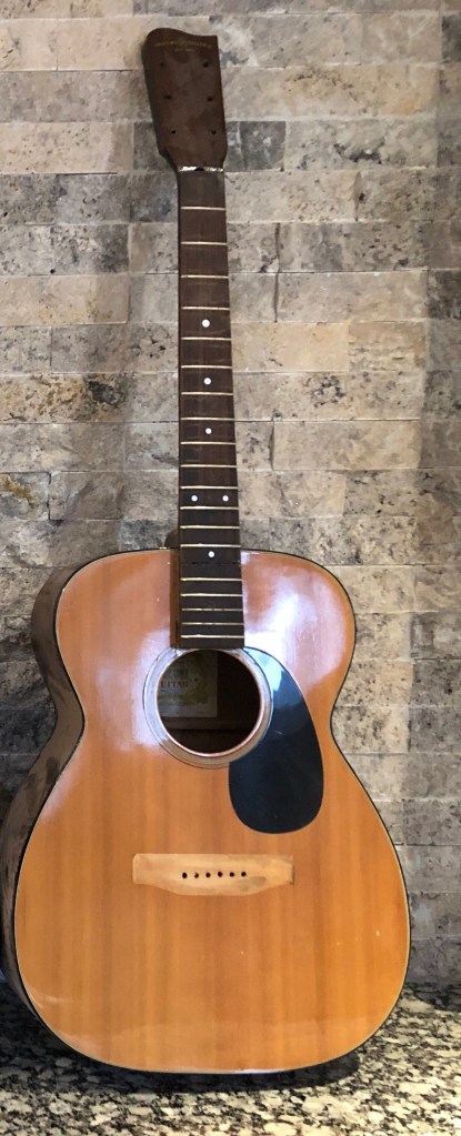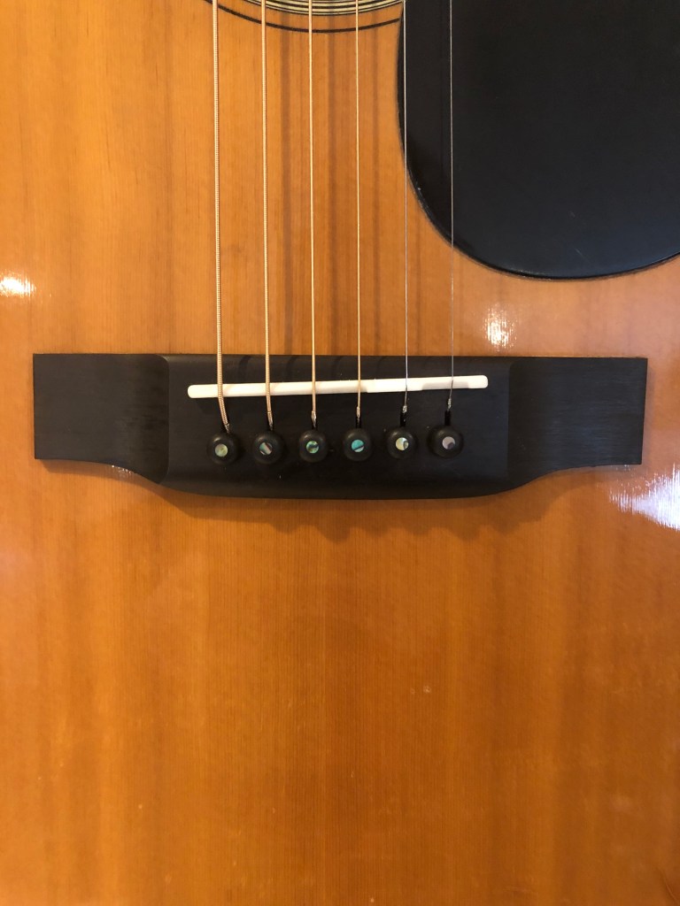 Slightly smaller than a dreadnaught, this AD213 is a great little folk guitar. Made in Japan in 1978. I’ll throw out a big thanks to Jeremy Hamm from #HammTone guitars in Winnipeg who passed this one my way because he said he’s never get around to finishing it. When it came my way, the frets had been already redone, except for a missing 15th fret. The broken headstock had also been fixed. What was left to do …. the neck was off and needed a reset, the bridge was missing, the nut was missing, and it had no tuners.