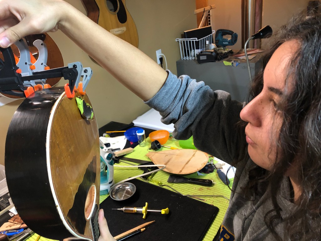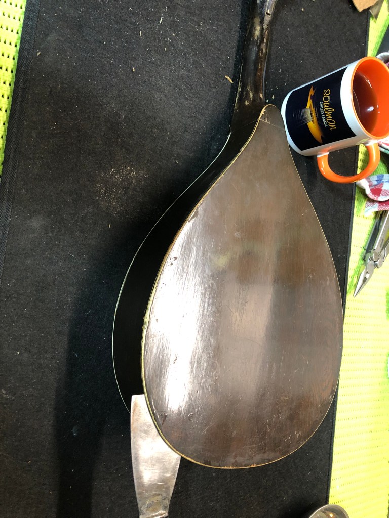 I don’t know much about this one. It’s really old and was in really bad shape when I got it. It came to me from a local Luthier who again was clearing out his “someday pile” … thanks Jeremy Hamm @hamm-tone guitars for another unique learning opportunity. If you read one of my other recent posts about the Suzuki, you’ll see my daughter learning the craft. This is another one she did most of the dirty work on. (Sidebar – if you’ve never heard of Hamm-Tone Guitars in Winnipeg Canada, you’re missing out on a whole world of magnificent one-of-a-kind, Luthier-built, guitars and mandolins).