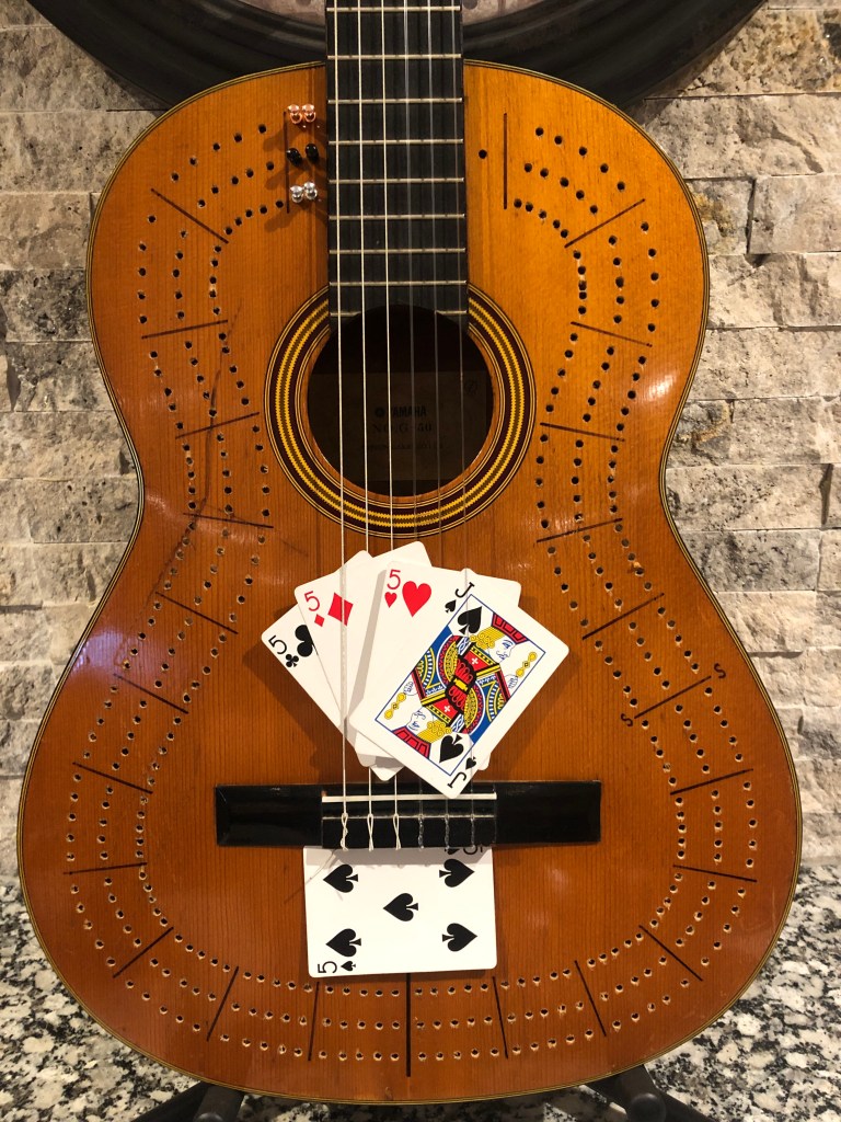 Previously, I had turned a failed electric guitar restoration into a cribbage board. It turned out really well, so when this old Yammie’s neck block was too broken to fix right, I figured I’d try making an acoustic cribbage board. It didn’t turn out quite as good I’d hoped it would, but it was fun nonetheless.